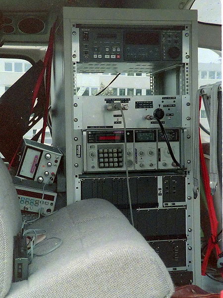 1991 octobre DAB Toulouse test réception satellite 1,5 GHz, émetteur dans l'hélico